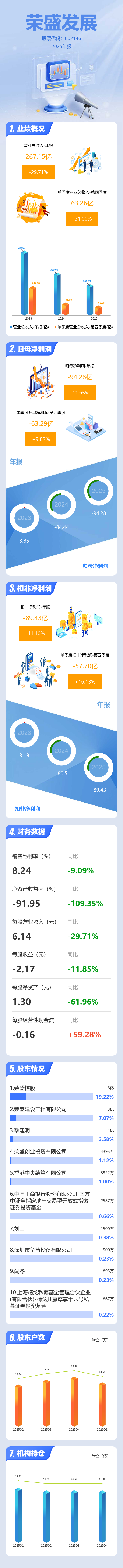 证券之星消息,荣盛发展2025年年报显示,当年度公司主营收入267.15亿元,同比下降29.72%;归母净利润-94.28亿元,同比下降11.65%;扣非净利润-89.43亿元,同比下降11.1%;其中2025年第四季度,公司单季度主营收入63.26亿元,同比下降31.0%;单季度归母净利润-63.29亿元,同比上升9.82%;单季度扣非净利润-57.7亿元,同比上升16.14%;负债率93.68%,投资收益-1.19亿元,财务费用23.87亿元,毛利率8.24%。