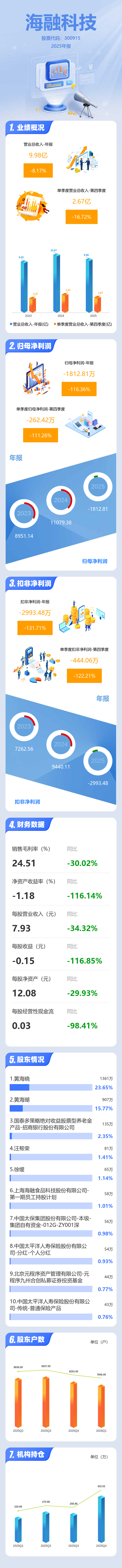 证券之星消息,海融科技2025年年报显示,当年度公司主营收入9.98亿元,同比下降8.18%;归母净利润-1812.81万元,同比下降116.36%;扣非净利润-2993.48万元,同比下降131.71%;其中2025年第四季度,公司单季度主营收入2.67亿元,同比下降16.73%;单季度归母净利润-262.42万元,同比下降111.27%;单季度扣非净利润-444.06万元,同比下降122.22%;负债率16.48%,投资收益1090.21万元,财务费用255.59万元,毛利率24.51%。