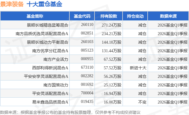 重仓景津装备的前十大公募基金请见下表: