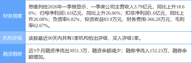 2026年4月26日,西南证券研究员邰桂龙,张雪发布了对思维列控的研报《2025年年报点评:高毛利业务占比提升,铁路安防业务快速增长》,该研报对思维列控给出“买入”评级。研报中预计公司2026-2028年归母净利润分别为7.46、8.04、8.65亿元,未来三年归母净利润复合增长率为15.86%,维持“买入”评级。证券之星数据中心根据近三年发布的研报数据计算,该研报作者对此股的盈利预测准确度为77.0%。