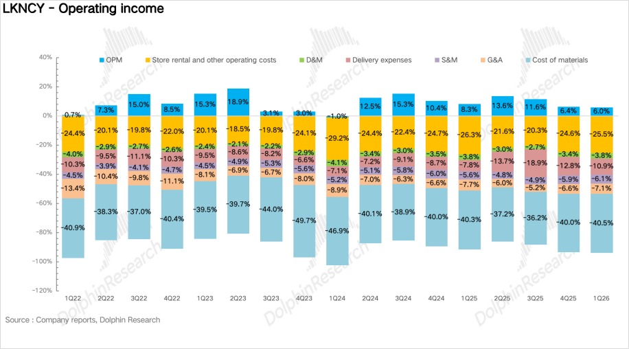 因此对于当期业绩来说,真正重要的不是营收能否立刻重回高增,而是补贴退潮之后,瑞幸能不能把利润模型重新拉回正轨,结合Q4、Q1配送费用占比连续回落,说明公司的订单结构在边际改善的过程中。