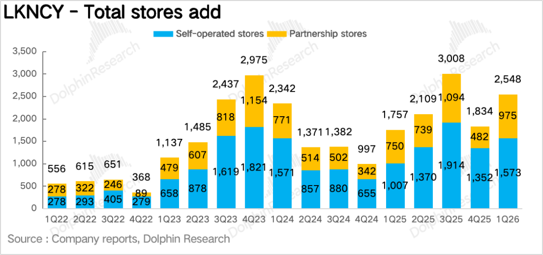 值得注意的是,26Q1瑞幸的业务边界实际上已经开始外延。除了原有的自营和加盟现制咖啡业务,公司正在新增两个值得持续跟踪的方向:一是瓶装即饮咖啡,二是可能借助蓝瓶切入的高端精品咖啡试点。 这两个新方向虽然短期对收入贡献未必大,但从估值逻辑看,很重要,因为它们意味着瑞幸未来不再只是比拼单店模型和开店速度,而是在探索品牌层级扩张和消费场景扩张。