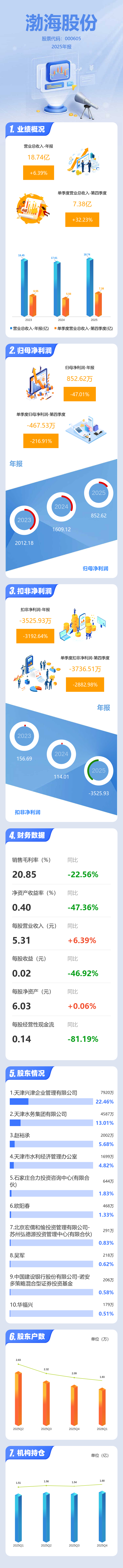 证券之星消息,渤海股份2025年年报显示,当年度公司主营收入18.74亿元,同比上升6.39%;归母净利润852.62万元,同比下降47.01%;扣非净利润-3525.93万元,同比下降3192.64%;其中2025年第四季度,公司单季度主营收入7.38亿元,同比上升32.23%;单季度归母净利润-467.53万元,同比下降216.91%;单季度扣非净利润-3736.51万元,同比下降2882.99%;负债率66.99%,投资收益2182.04万元,财务费用7491.17万元,毛利率20.85%。