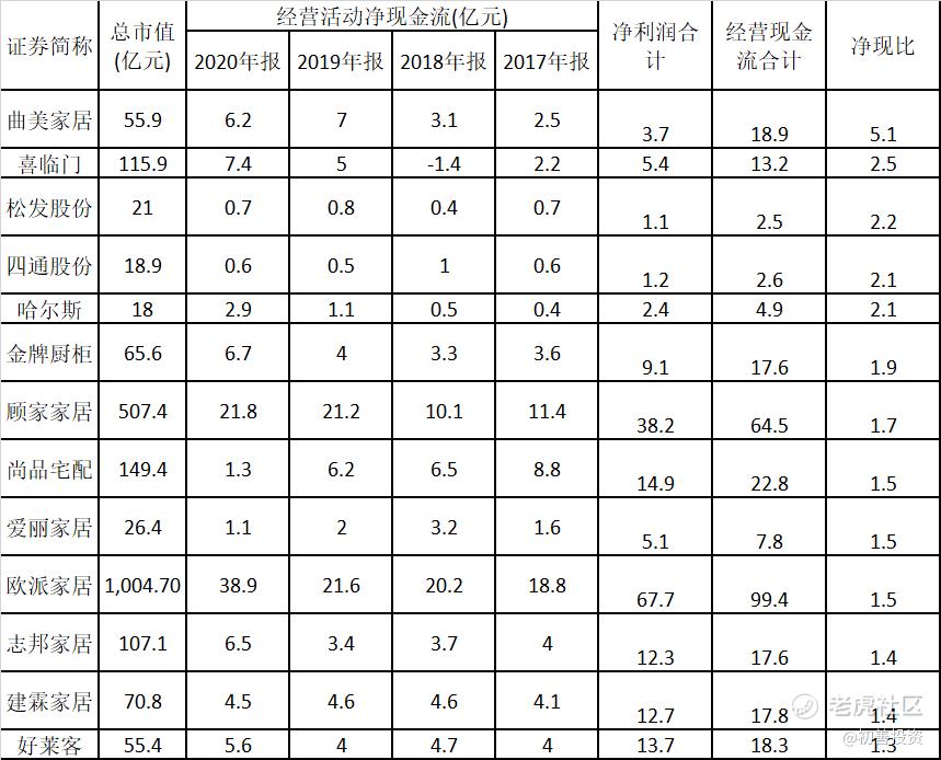 其实家居板块经营现金流都很好,并不存在特别差的情况,不少公司的净现比都大于1,曲美家居四年净利润只有3.7亿,经营现金流更是达到了18.9亿元,净现比高达5.1。