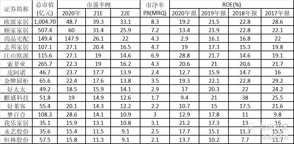 当然,这些估值高点的公司,股价表现的非常好,比如欧派、顾家、志邦家居、江山欧派、索菲亚等,如果把这些股价表现后的公司剔除,可供选择的公司就不多了。