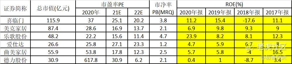 需要注意的是恒林股份和永艺股份跟乐歌股份一样,2020年业绩的爆发主要是海外疫情爆发,公司办公桌椅销售大幅增加所致,同时毛利率、净利率显著低于其他家居公司。你们会有一种索菲亚、欧派、顾家估值高一点有高一点的道理。