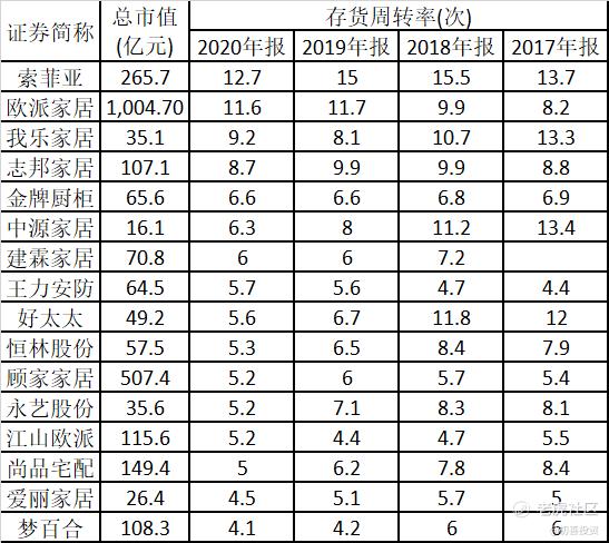 目前来看,存货周转率高的公司都很不错,比如索菲亚和欧派家居存货周转率均大于10次。