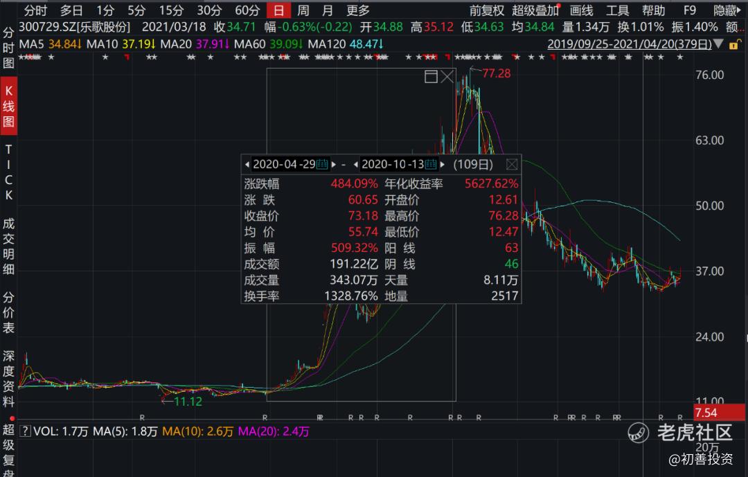 乐歌股份的股价半年内涨了差不多5倍。当然股价走势远早于业绩走势,股价在2020年半年报披露后基本见顶了。