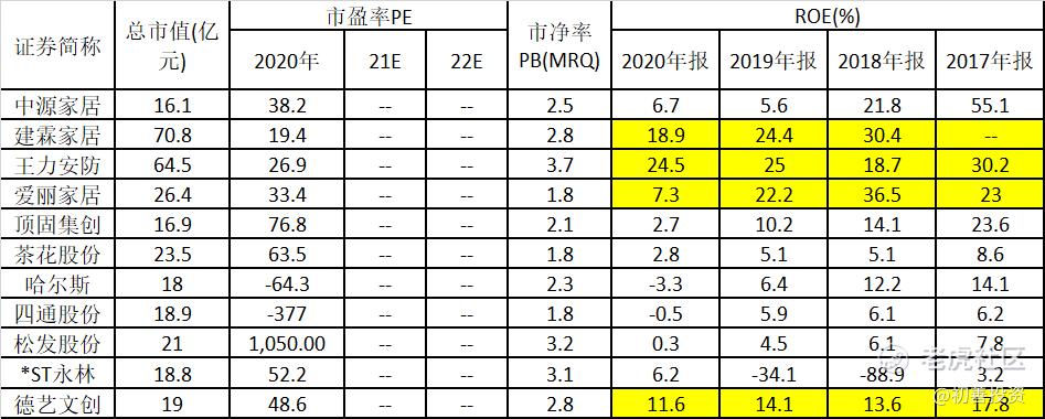 首先,下面这些公司属于没有券商覆盖的公司,我们可以一票排除了。其中ROE比较高的几家公司,建霖家居、王力安防、爱丽家居和德艺文创等,都属于新股,高ROE可持续性不强,后续仍有待观察。