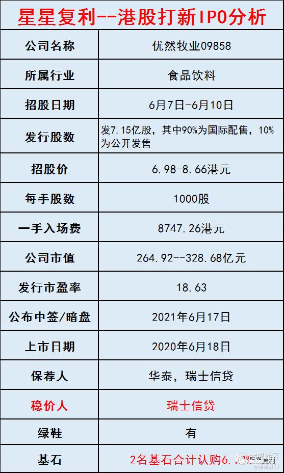 优然牧业是消费行业并且基本面很不错,发行估值合理,如果认购不火爆,可能会下限价定价,星星个人很喜欢基本面优秀的公司,在优先认购时代天使和科济药业后,有闲钱的情况下,星星个人会积极认购。