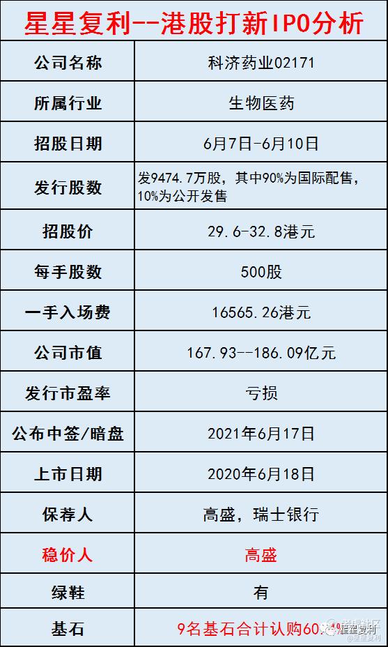6、基石阵容豪华,包括LAV、新华资本、CloudAlpha、睿远、WT、广发基金、Dymon Asia、常春藤及南方基金,禁售期6个月,说明这些专业投资机构,看好科济药业的长期发展。