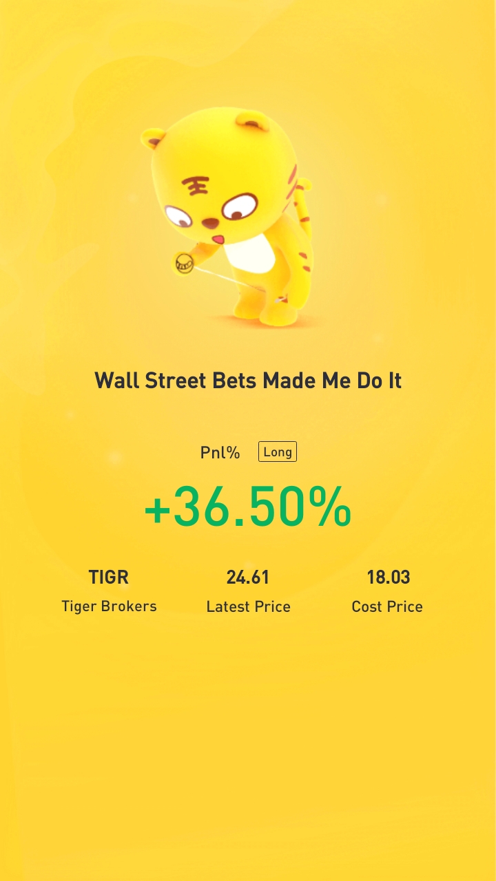 $Tiger Brokers(TIGR)$My first investment on tiger broker. My biggest investment on tiger broker. My most satisfying and confident investment of my entire portfolio.
