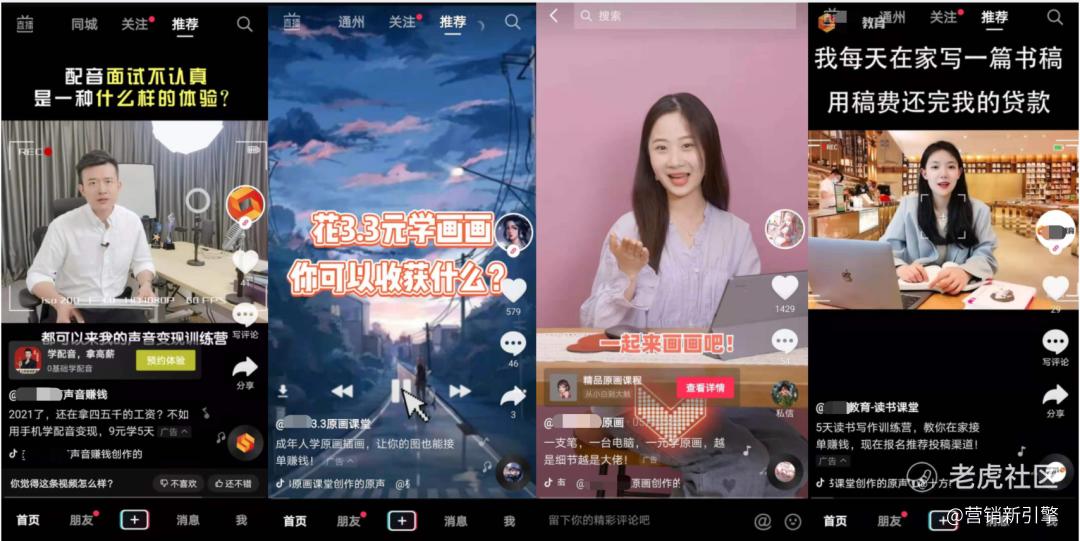 这些“机构”基本上是什么火就做什么——前两年“国漫崛起”被大众多次提及,各种平台上就都有“0元教你学绘画、学动漫”的广告;短视频流行开来后,“教你学视频剪辑”的广告就随之出现;今年上半年基金热潮,“0元教你投资理财”又层出不穷。