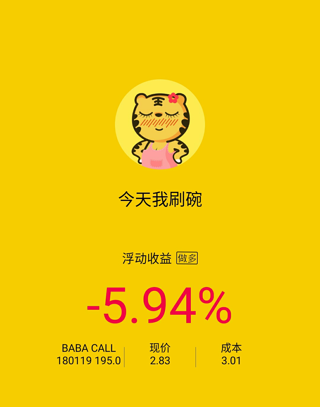$BABA 20180119 195.0 CALL(BABA)$ 😂回本有希望么?#晒盈亏得研报#