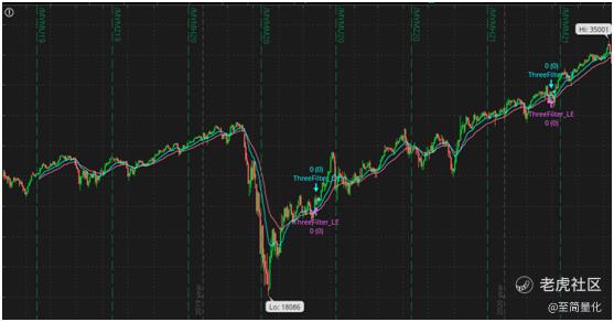 三重过滤系统是埃尔德在《以交易为生》中提出的一种重要的交易策略,所谓三重指的是时间层面的三个不同的维度:比如你用日线做交易,那么首先要跳出日线图,找到它的上一周期的K线图,即周线图。在整个更大范围的周线图上,可以看到中长期的大趋势。
