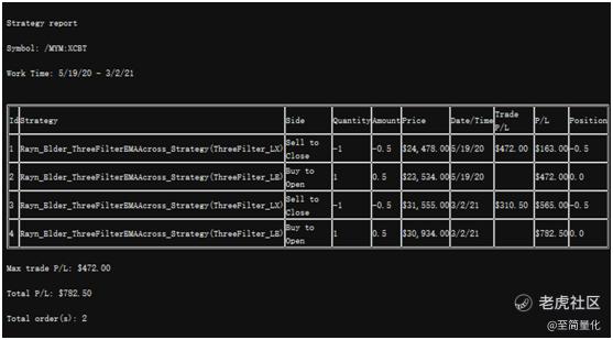 再看收益情况,总收益782.5刀,远远低于“追高”的突破法,在前面也说了,这是一种温和的开仓方式,不追高,很保守,买的机会不多。那如果稍微改变一下计算穿越距离的天数,把30天换成10天又怎么样呢?