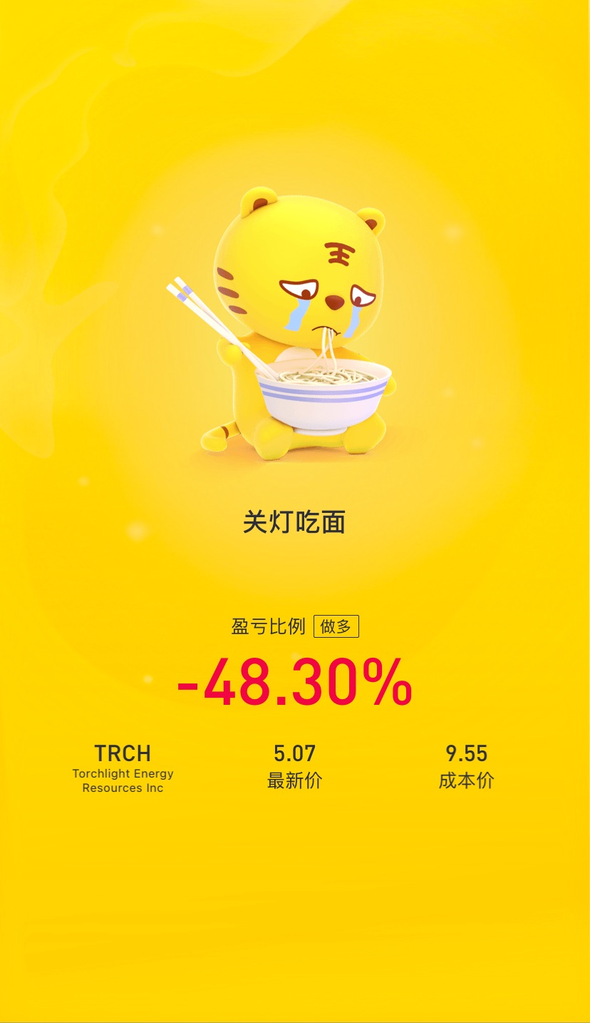 $Torchlight Energy Resources Inc(TRCH)$反正都试过跌到3块钱的时候了…现在卖不卖也没差。既然都守到现在了……为何要现在卖?卖了就钱真的拿不回来了…hold着 还会有希望