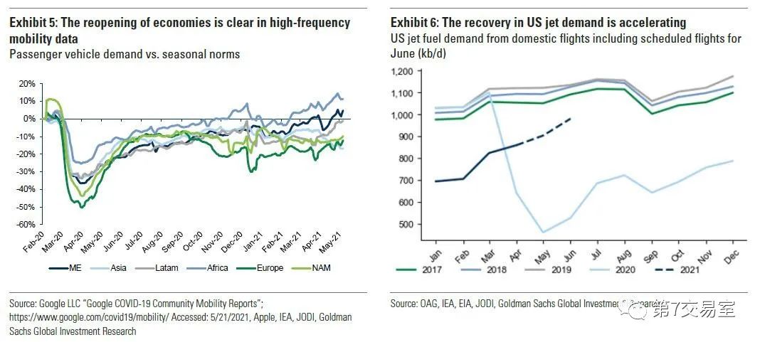 高盛统计出的数据显示,全球的机动车和飞机出行需求明显上涨,世界范围内的货运,工业活动也在激增,生产的复苏可能比我们此前预期的要大,所以高盛大但的预测,布伦特油价可能会触及80美元一桶的价格。