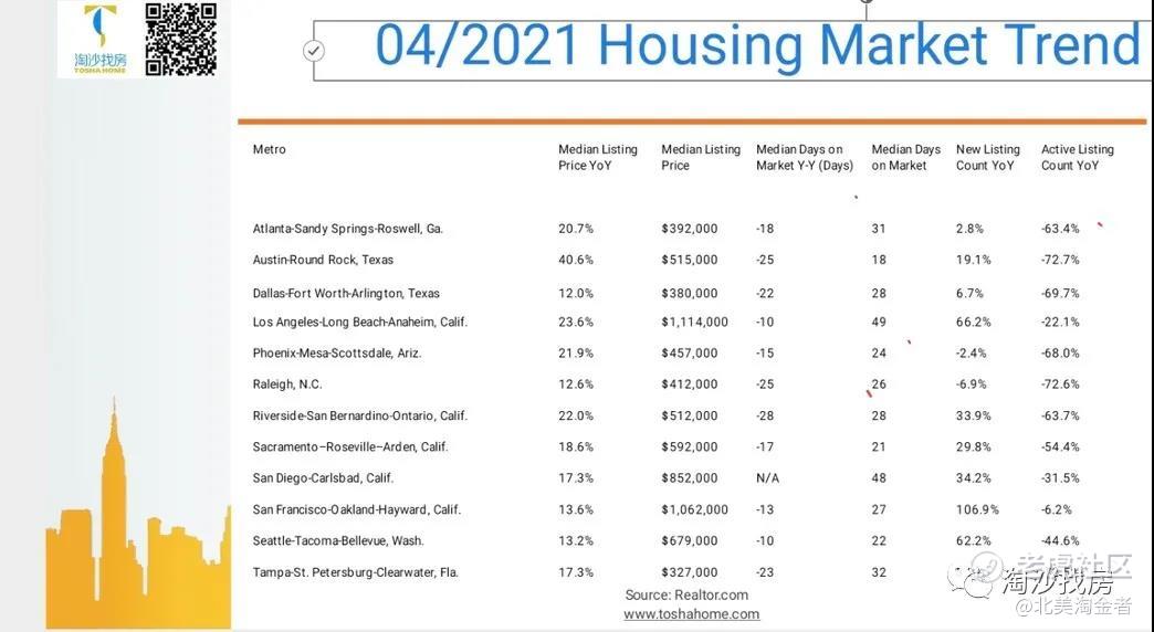 还有Dallas, Sacramento,San Diego,是San Francisco,Seattle,Tampa等地区也都呈现了挂牌价格的快速增长。
