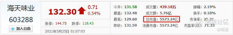 目前海天味业的总市值为5573亿,高于我们的估值!