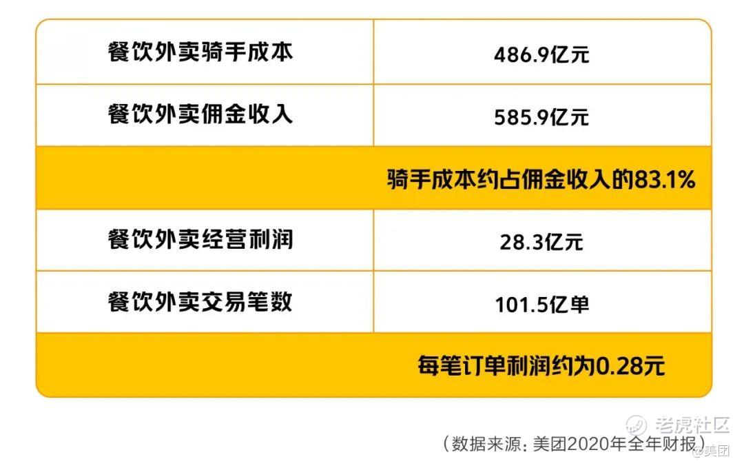 当然也有很多商家说“哎呀,拉我们开这么多会,调来调去的,你们直接降费率不行吗”。这是大家最关心的问题,也是我们尝试和大家沟通的。外卖是一个连接用户、商家、骑手三方的业务,也是一个微利业务,主要靠佣金支撑运转,成本大头是骑手工资,2020年,骑手成本占佣金收入的83.1%。美团外卖每笔订单利润是0.28元。其中,美团配送的订单,单均配送成本是7.38元,每笔亏损0.03元。我们希望给用户提供性价比高的服务,也希望让商家和骑手都有钱赚。直接降佣金,虽然简单,但无法持续,结构性的收费调整才能让整个外卖生态往更多赢、更健康的方向发展。