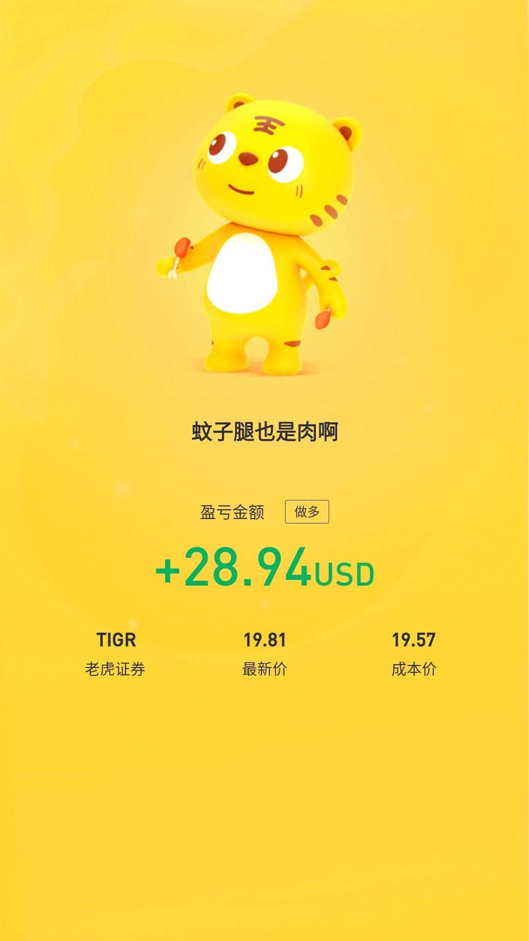 不管是否抄底成功,19.5这个价位我觉得舒服,120股 价值投资老虎证券,加油