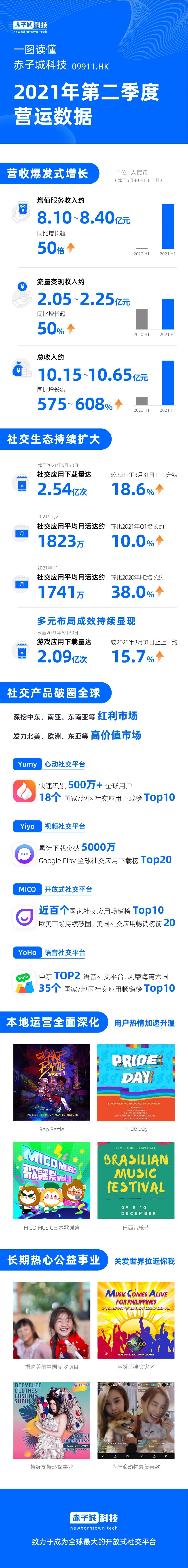7月9日,赤子城科技发布2021年第二季度运营数据公告。今年上半年,公司收入大幅增长,尤其是增值服务收入,实现同比超50倍的爆发式增长。