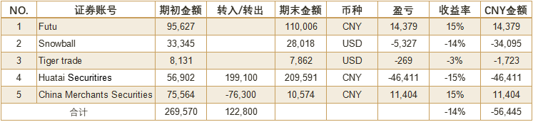 2021辛丑年时间过半,这半年的投资总体为亏损14% 的状态,涉及港美股和A股投资的5个账号。