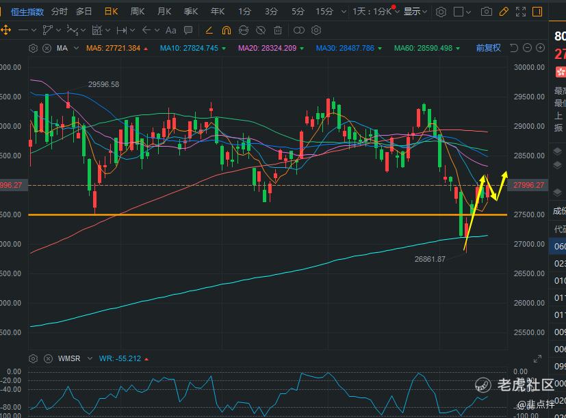 恒指今天如期反弹,反弹的力度还不错,上周五开始的反弹短期可望延续,恒指以20天线(目前约28346点)作为首个反弹目标,后市如果不能突破28346点压力,回踩也无需过于担心,可以继续看好~