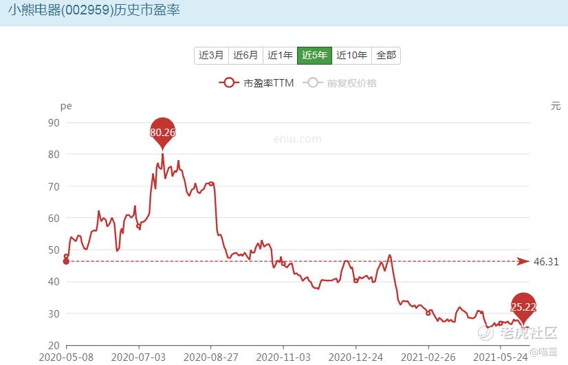 计算得出小熊电器最近5年的年化收益率为56.4%。由于行业竞争加剧的风险给出小熊电器25%的增速。