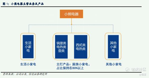 从产品上看,公司主营业务包括厨房小家电、生活小家电和其他小家电。小熊最早从酸奶机产品起家,随后不断进行品类扩张,目前公司主打的厨房小家电业务有5大类,主要包括锅堡类、电热类、壶类、西式类、电热类。