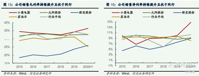 一般情况下毛利率大于40%的公司有核心竞争力很强。小熊电器近五年的毛利率稳定在33%左右,竞争力不是很强,但是我们参考同行对比发现小熊电器的销售毛利率和销售净利润都优于同行。