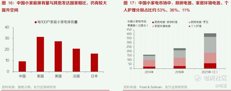 小家电家庭保有量较低,增长空间依然广阔。豆浆机、榨汁机、新风、吸尘器等小家 电则是在满足基本生活需求之后追求品质生活的象征,户均保有量依然较低,根据欧 睿国际研究显示,我国小家电户均保有量不足 10 台,远低于欧美发达国家 30-50 台 的户均保有量,同时,与欧美国家相比,我国小家电消费习惯更加偏向日韩的细分品类路线,而非欧美的集成式路线,未来户均小家电保有量增长潜力巨大。