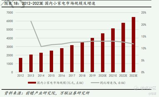 根据 Frost & Sullivan 的统计,2018 年中国小家电市场零售额达237亿美元,伴随居民消费能力提升,主力消费人群更迭至更为年轻、注重品牌及品质的 90 后,预计未来 5 年中国小家电行业零售额年均复合增速将达 12%;