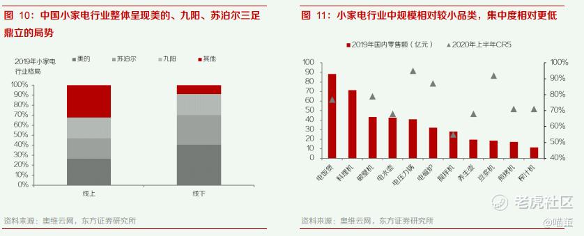 小家电行业品类繁多,公司定位长尾市场,切入传统小家电龙头难以全面覆盖的领域,实现快速增长。中国小家电行业整体呈现美的、九阳、苏泊尔三足鼎立的局势,根据奥维云网的统计,2019 年 小家电线上、线下渠道 CR3 分别达 68%、91%;具体来看,电饭煲、电压力锅、电磁炉等规模较 大的传统品类集中度整体较高,CR5 分别达 77%、95%、87%;