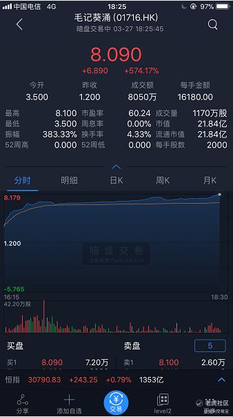 最具代表性的是辉立证券的暗盘,交易时间为16:15~18:30,交易活跃,参与的人数也多。只有新股可以通过暗盘交易,已经上市的股票不行。目前组织暗盘交易的券商有辉立证券、耀才证券、据说一通证券也有。