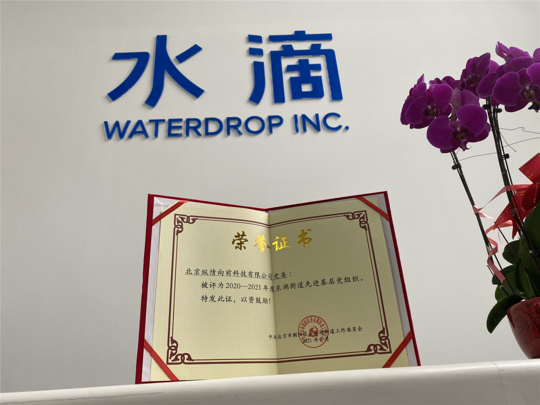 6月25日,为庆祝中国**成立100周年,北京东湖街道工委表彰一批先进基层党组织、优秀**员和优秀党务工作者。经过认真审核、遴选审议,确定了20个先进基层党组织、100名优秀**员、20名优秀党务工作者拟表彰对象。北京纵情向前科技有限公司党委(下称水滴党委)荣获“东湖街道先进基层党组织”称号。