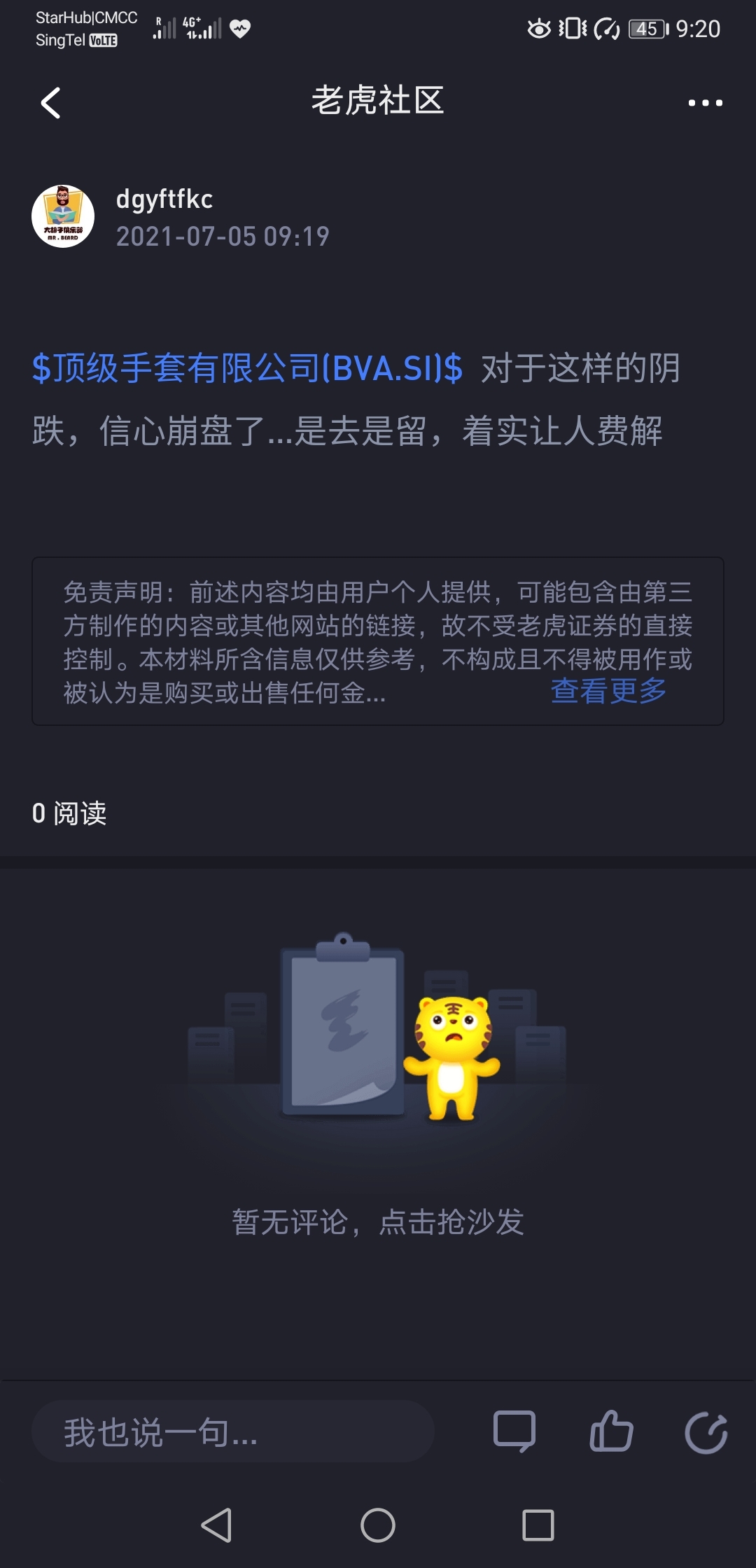 {"i18n":{"language":"zh_CN"},"detailType":1,"isChannel":false,"data":{"magic":2,"id":155431457,"tweetId":"155431457","gmtCreate":1625448131079,"gmtModify":1631885045667,"author":{"id":3567561662052136,"idStr":"3567561662052136","authorId":3567561662052136,"authorIdStr":"3567561662052136","name":"dgyftfkc","avatar":"https://static.tigerbbs.com/a37eea23b005b8e43a422201bfb4c832","vip":1,"userType":1,"introduction":"","boolIsFan":false,"boolIsHead":false,"crmLevel":1,"crmLevelSwitch":0,"individualDisplayBadges":[],"fanSize":44,"starInvestorFlag":false},"themes":[{"themeId":"5afcc0d8780a4b05acb3d56b26e7b1a9","categoryId":"bc7f9e79615545918dda2e7d7cfb9e15","name":"新加坡投资圈","type":0,"rnLink":"https://laohu8.com/RN?name=RNTheme&page=/theme/detail&rndata={\"themeId\":5afcc0d8780a4b05acb3d56b26e7b1a9}&rnconfig={\"headerBarHidden\": true}","description":"虎友们想了解的新加坡股市、基金等投资机会都在这里!","image":"https://static.tigerbbs.com/977210e5ffb1dd4d02a1ad243fb4fb66"}],"images":[{"img":"https://static.tigerbbs.com/95896ee6ee63cdbff2e6d685bf465c0c","width":"1080","height":"2240"}],"coverImages":[{"img":"https://static.tigerbbs.com/95896ee6ee63cdbff2e6d685bf465c0c","width":"1080","height":"2240"}],"extraTitle":"","html":"<html><head></head><body><p><a href=\"https://laohu8.com/S/BVA.SI\">$顶级手套有限公司(BVA.SI)$</a>就这么苦一句话小老虎咋的就不让发,是跌的不让说??还是让我们眼不见心不烦</p><p><img src=\"https://static.tigerbbs.com/95896ee6ee63cdbff2e6d685bf465c0c\" tg-width=\"1080\" tg-height=\"2240\"></p></body></html>","htmlText":"<html><head></head><body><p><a href=\"https://laohu8.com/S/BVA.SI\">$顶级手套有限公司(BVA.SI)$</a>就这么苦一句话小老虎咋的就不让发,是跌的不让说??还是让我们眼不见心不烦</p><p><img src=\"https://static.tigerbbs.com/95896ee6ee63cdbff2e6d685bf465c0c\" tg-width=\"1080\" tg-height=\"2240\"></p></body></html>","text":"$顶级手套有限公司(BVA.SI)$就这么苦一句话小老虎咋的就不让发,是跌的不让说??还是让我们眼不见心不烦","highlighted":1,"essential":1,"paper":1,"likeSize":3,"commentSize":1,"repostSize":0,"favoriteSize":0,"link":"https://laohu8.com/post/155431457","repostId":0,"isVote":1,"tweetType":1,"viewCount":1591,"commentLimit":10,"likeStatus":false,"favoriteStatus":false,"reportStatus":false,"symbols":["BVA.SI"],"verified":2,"subType":0,"readableState":1,"langContent":"CN","currentLanguage":"CN","warmUpFlag":false,"orderFlag":false,"shareable":true,"causeOfNotShareable":"","featuresForAnalytics":[],"commentAndTweetFlag":false,"andRepostAutoSelectedFlag":false,"upFlag":false,"length":95,"xxTargetLangEnum":"ZH_CN"},"commentList":[],"isCommentEnd":true,"isTiger":false,"isWeiXinMini":false,"url":"/m/post/155431457"}
