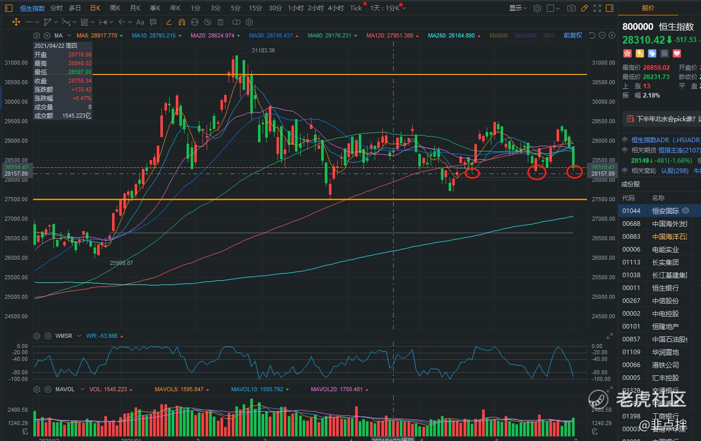 昨日香港回归纪念日,港股休市,今天恒指今天跌得还是比较多的,盘中没有什么反弹的迹象,现在恒指又到了我们说的第一支撑点,28170点,现在只要不跌破这个支撑,后续大概率还会震荡向上~