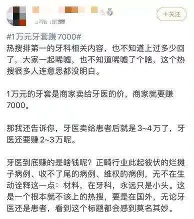 最近“1万元牙套赚7000”的新闻承包了微博热搜,牙科搞钱的内幕昭然若揭。
