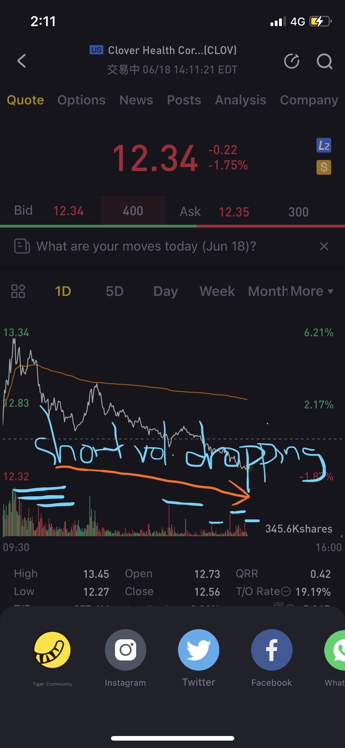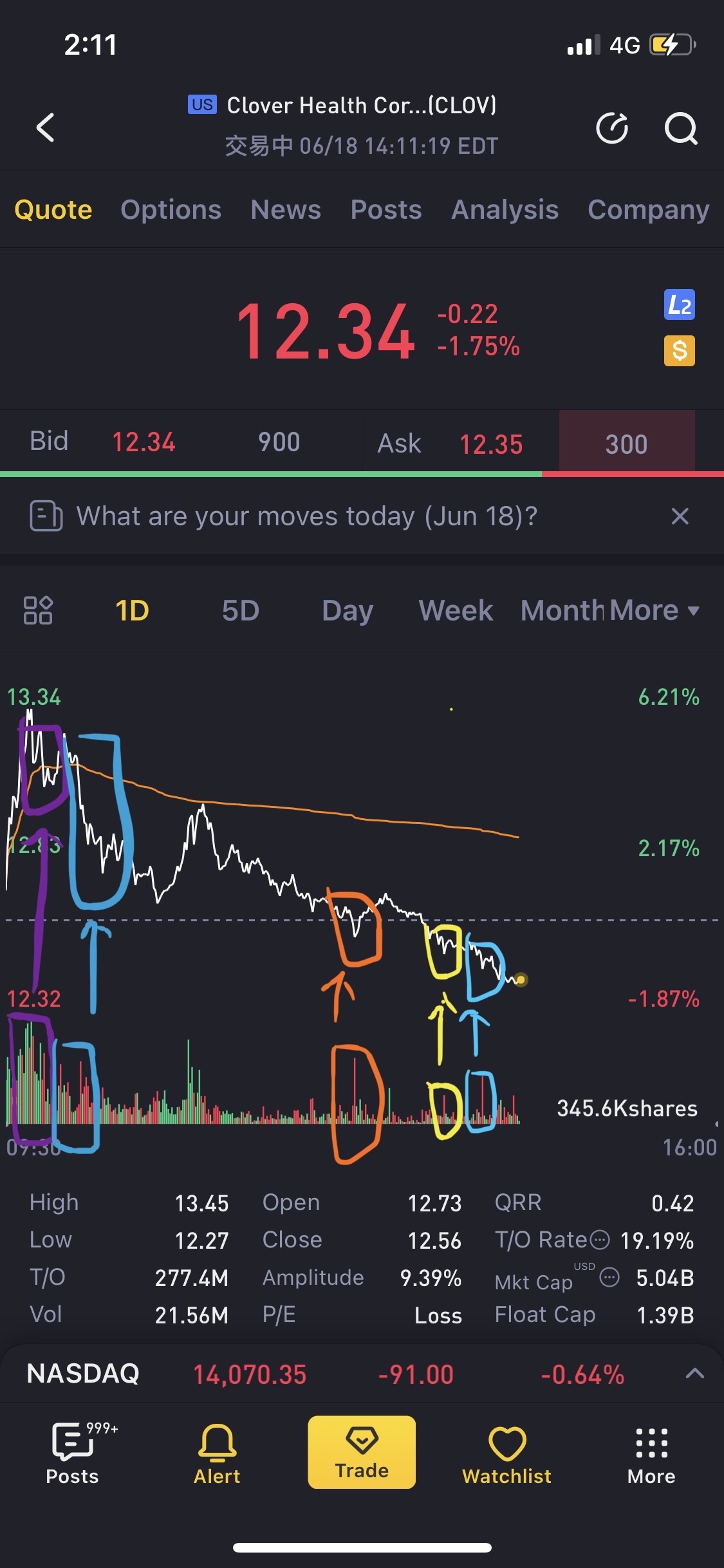 $Clover Health Corp(CLOV)$Many call options between 13-22 expiring today. Market opened 13.xx but HFs very afraid gamma squeeze so short heavy to scare apes but APESTOGETHER STRONG AND PUSH BACK 🙌🏻🍀🍀