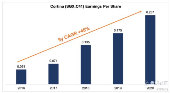 #2 –Cortina(新交所代码:C41)每股收益 +48%,股价+220%