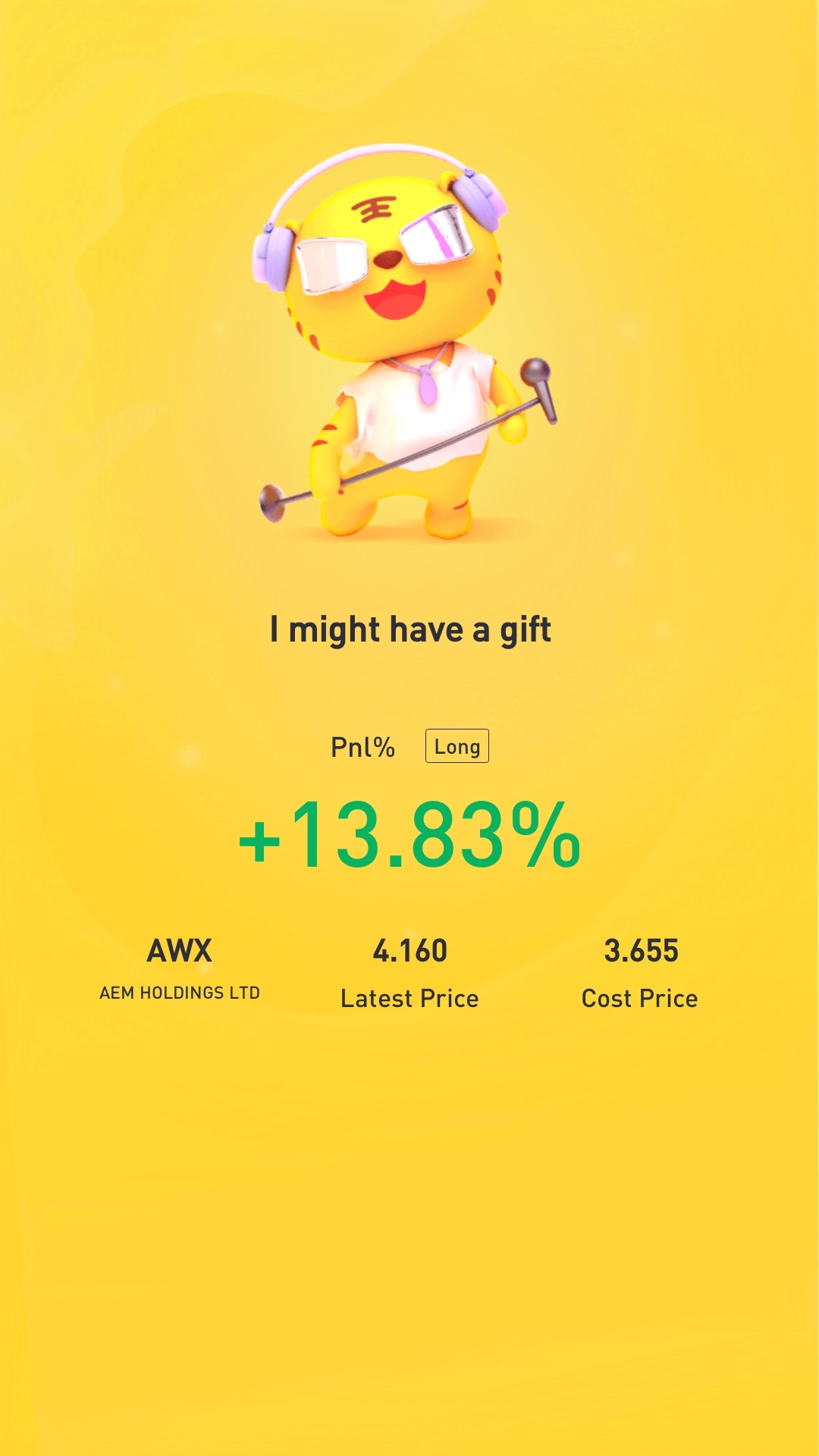 $AEM HOLDINGS LTD(AWX.SI)$the only stocks i hv tat is in green now. 🤣🤣 donno to laugh or to cry. lol