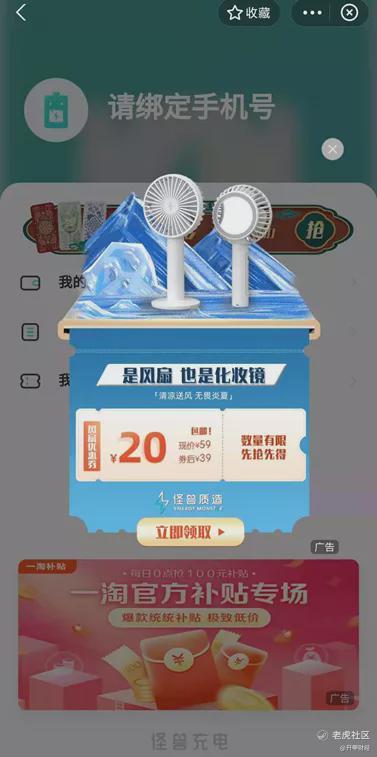 怪兽充电小程序在个人中心推荐用户购买“怪兽质造”充电宝99元一个,以及59元的小风扇。此外,怪兽还在个人中心插入第三方合作品牌广告。