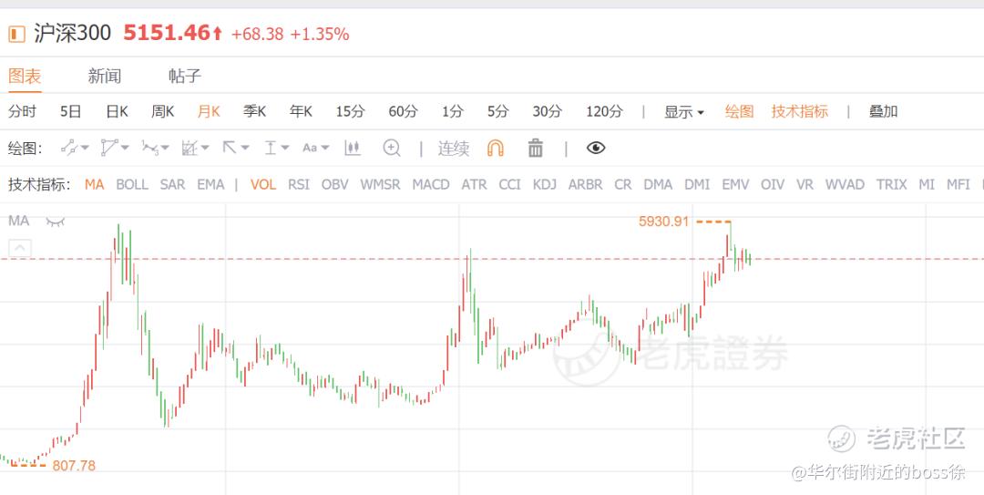 即使在 A 股,代表大盘指数的沪深 300 在 2005 年上市之初买入到现在,也涨了大约 5 倍。