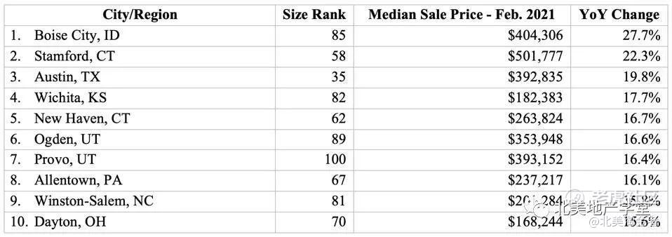 这5个城市里,Austin, Raleigh 和Boise都是目前全美房市最火爆的,比如Boise房价中位数涨幅位于全美榜首,同期上涨了27.7%,Austin上涨了19.8%。