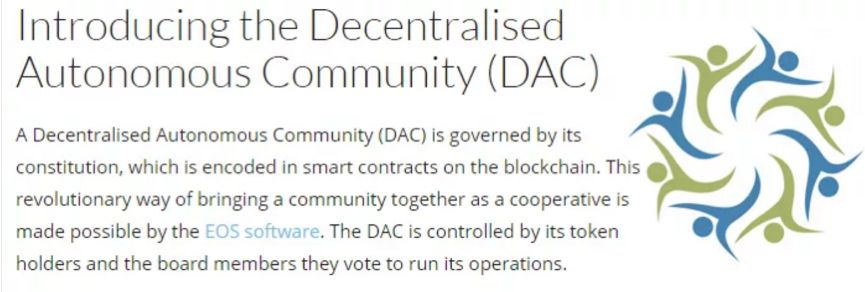 DAC(Decentralised Autonomous Community)是致力于成为一个不断发展的分散式自治社区为全球EOS社区提供服务的领先EOS.IO区块制作商。通过EOS软件,使社区成为合作社的一种革命性方式成为可能。发展援助委员会由其代币持有者和董事会成员控制运行。而eosDAC将于2018年6月初在EOS区块链上作为DAC推出,直到eosDAC由其发射团队运行为止。