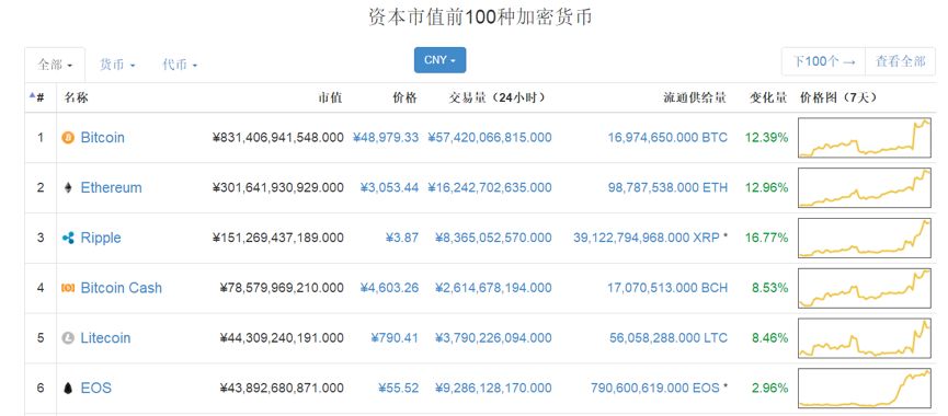 随着EOS逆势上扬,市值也重新回归全球前列。CoinMarketCap排行显示,当前EOS市值排行全球第六。