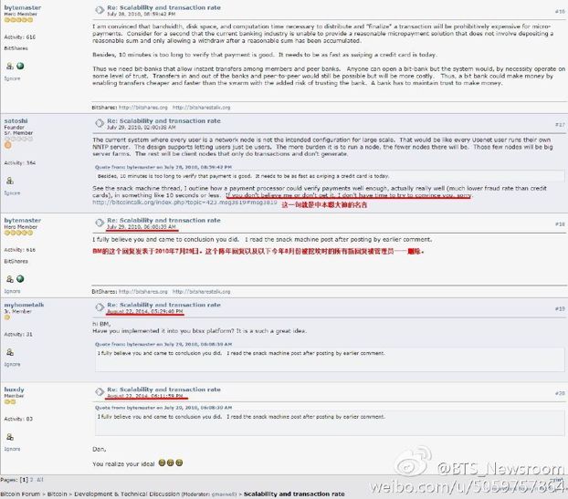 2010年7月,BM就在Bitcointalk上对中本聪大神指出,跟银行相比,比特币10分钟一次的交易确认时间显得太长了,需要做到像刷信用卡那么快,而改变共识机制可以实现这一点。