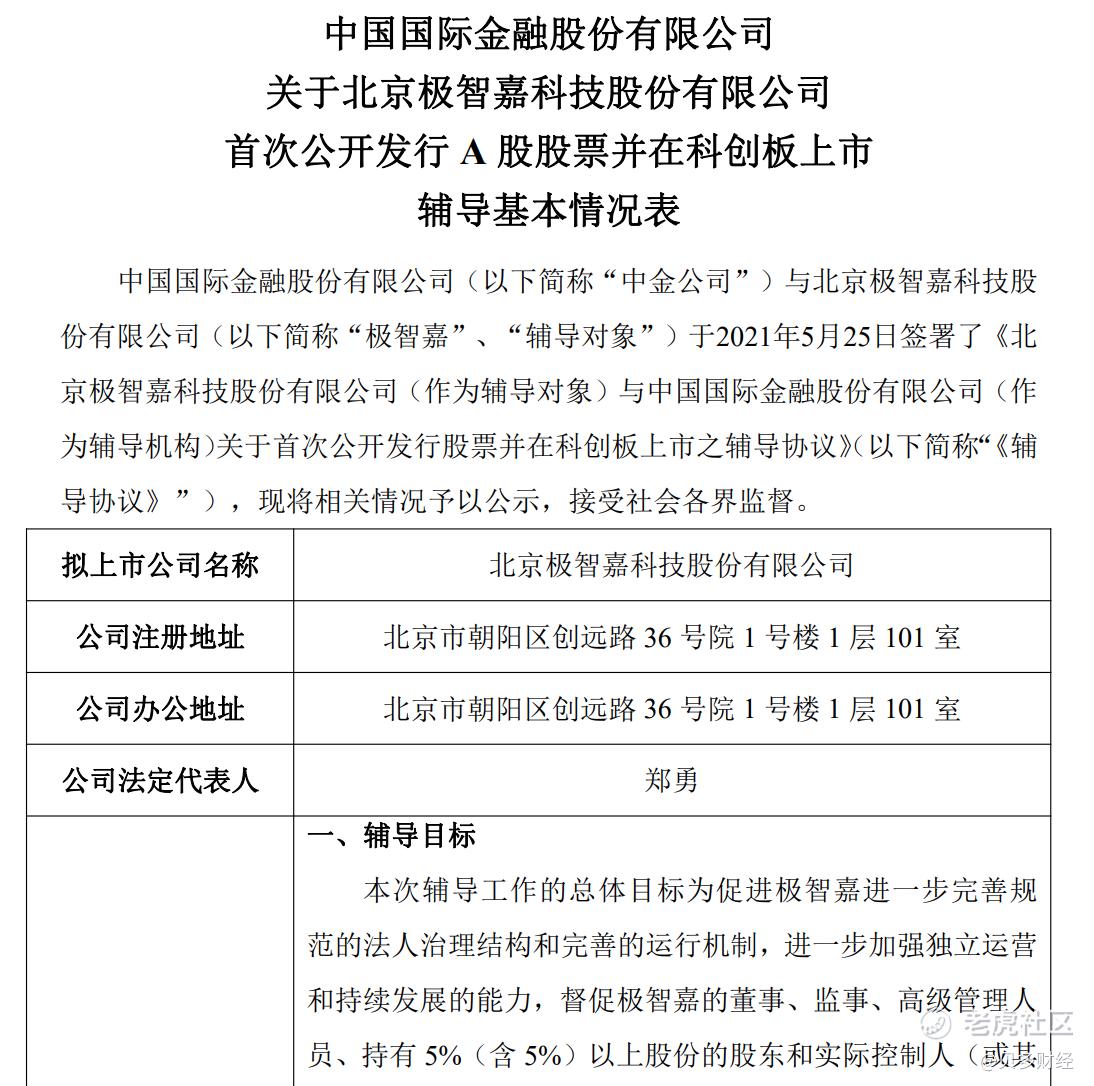 6月11日,贝多财经发现,北京证监局披露的信息显示,北京极智嘉科技股份有限公司(下称“极智嘉”)已与中国国际金融股份有限公司(即“中金公司”)签署上市辅导协议,并在北京证监局备案。